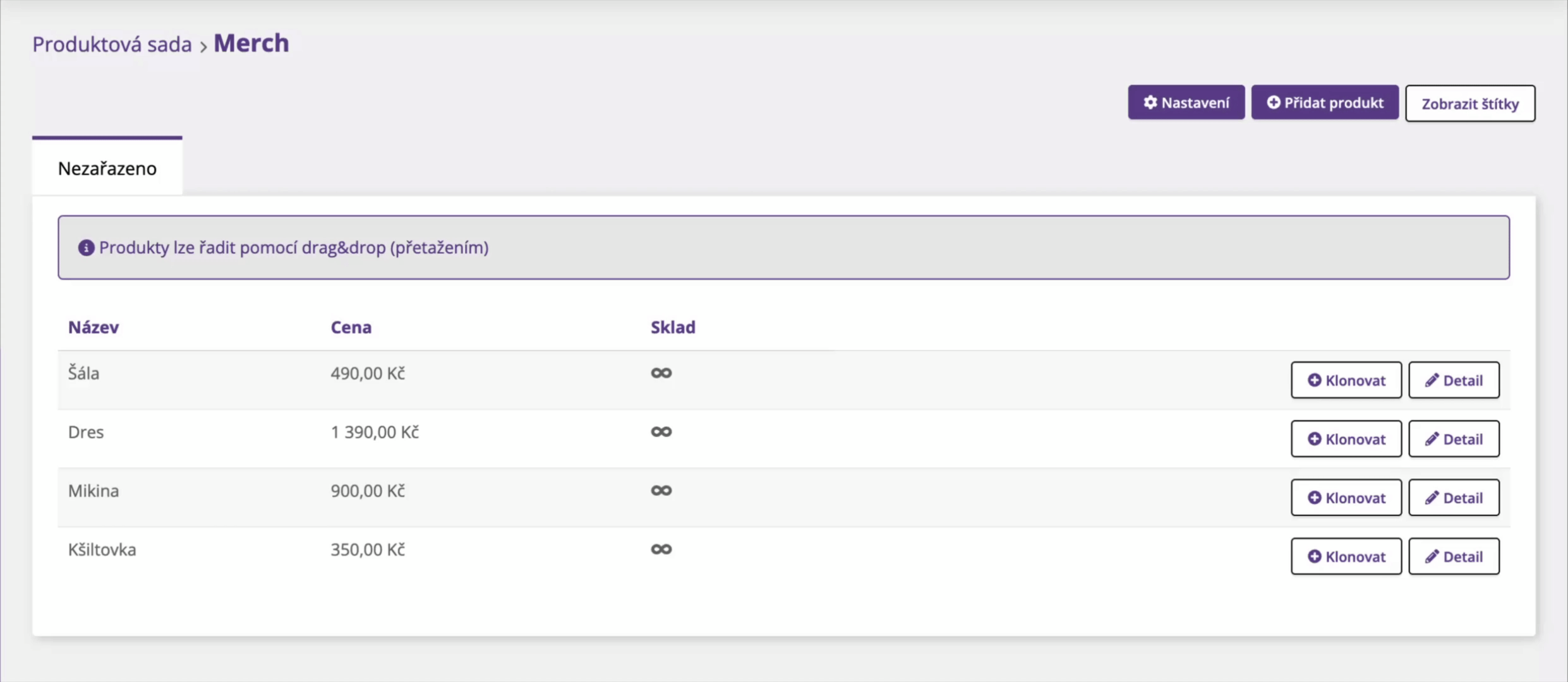 Produkty lze nově řadit pomocí drag & drop přímo v administraci.