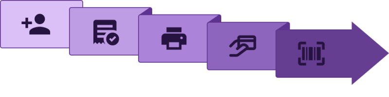 - Na místě je karta vydána a ostraha kontroluje vstup přes terminál.